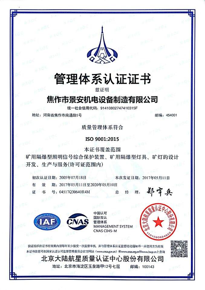 焦作景安公司始終堅持“以科技為先導,以市場為導向”的發(fā)展戰(zhàn)略,不斷進行新產品的研制和開發(fā),在國家“六五”到“九五”期間,承擔和參與了國家多項科技攻關項目。并被中國電器工業(yè)協(xié)會評定為“質量可信產品”。特別是在礦用防爆燈領域,礦用隔爆型半導體(LED)照明燈具,2008年列入國家火炬計劃,獲2009年河南省工業(yè)和信息化廳的科技成果二等獎,并擁有多項國家專利。